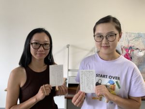 写真は日本語の授業の一環として行った挨拶状の作成。これからお世話いただく実習実施者様(介護施設)へ挨拶状を書きました。年末年始は年賀状、夏季は暑中見舞い等、時候の挨拶を行うようにしています。